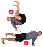 Для начала необходимо опуститься в глубокий присед и развести руки в стороны. Теперь попробуй упасть назад, не разгибаясь в пояснице. После этого нужно перекатиться через голову назад и приземлиться, приняв упор лежа. Следи, чтобы колени не касались пола. Сделай 15 повторов этого упражнения. С его помощью ты сможешь развить ловкость и подкачать мышцы пресса.
