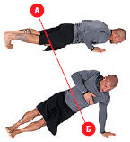 Согнись в области поясницы, опустив на пол руки и поставив ступни на мыски. Теперь необходимо согнуть руки в локтях и головой прикоснуться к полу. Вернувшись в исходную позицию, сделай еще 5 повторов. Данное упражнение весьма эффективно для развития функциональной силы плечевого пояса.