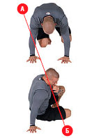 Сначала нужно встать на четвереньки, ноги при этом согни в коленях до прямого угла. Пола можно касаться лишь мысками. Бедра поверни вправ¬о, после чего сделай поворот правым боком к полу, оторвав от него левую руку. Очень быстро прими исходную позицию и те же движения проделай с левой стороной. Все это - один повтор. Таких тебе необходимо сделать еще 10. Прежде всего данное упражнение тренирует твою нервную систему. Ты осваиваешь непростые движения в спокойной обстановке, после чего сможешь с легкостью делать обычные в сложных ситуациях.