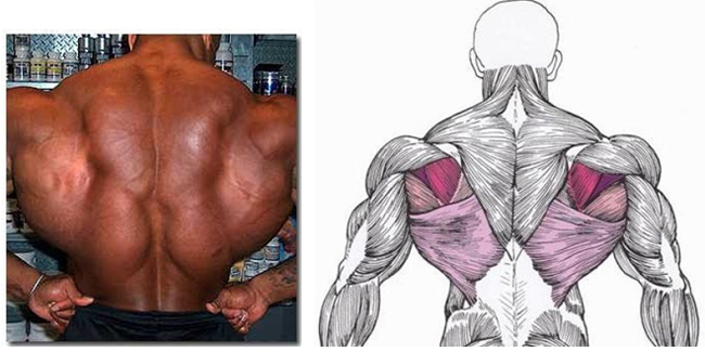 Теперь давайте перечислим поверхностные мышцы, относящиеся ко второму слою. Это зубчатая, поднимающая лопатку, и ромбовидная мышцы. Они непосредственно участвуют в тренировочном процессе и даже развиваются, однако мы не способны их увидеть, как мышцы первого слоя.