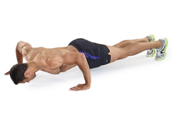 Стартовая позиция – упор лежа, руки немного шире плеч, тело прямое. Упор ног на носки. Подними свой вес с помощью рук, при этом тело должно оставаться прямым. Локти нужно держать ближе к телу.