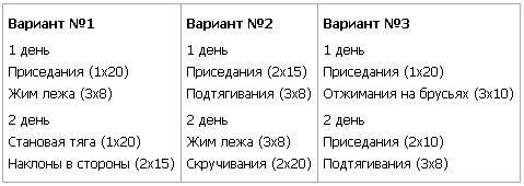 В таблице 3 приведены рекомендуемые варианты тренировок: