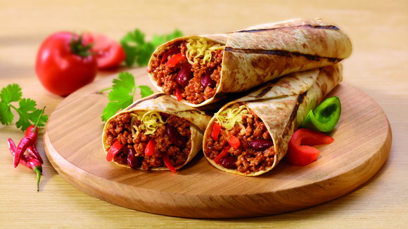 Бурритос - тортилья, начиненная мясом, томатами, фасолью, сальсой и соусом из сметаны.