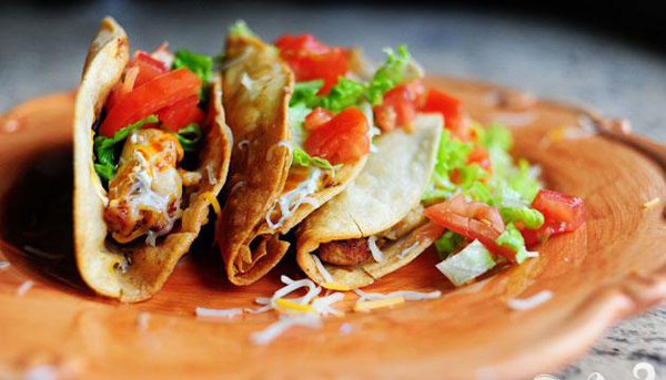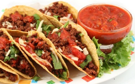 Такос - тонкие тортильяс, в которые кладут начинку и складывают пополам. Начинки самые разные, но в основном горячие, из говяжьего фарша с перцем чили, бобами и зеленью.