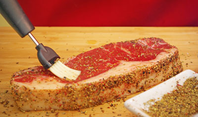 Для этого можешь выбрать любое растительное масло на свой вкус. Идеально для данной цели подходит оливковое масло. Чтобы обработать им стейк, можешь использовать специальную силиконовую кисть, обычный пучок зелени или же просто собственную руку.