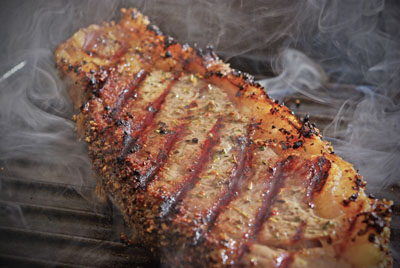 Если ты решил пожарить стейки на углях, помни, что температура готовки будет гораздо выше, чем на сковородке. Потому сначала обжарь мясо с одной и с другой стороны по 30 секунд, пока не появится корочка - она не даст сокам вытечь. После этого продолжай жарить стейки до готовности, периодически их переворачивая.