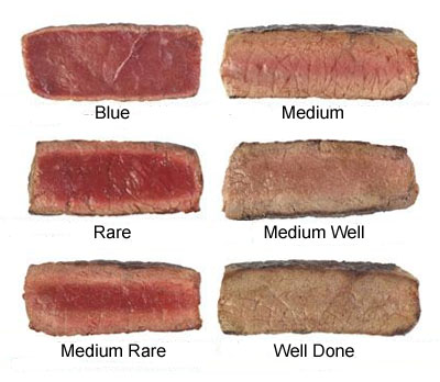Все же повара сходятся во мнении, что жарить стейк из отличной говядины до состояния Medium-Well или Well-Done - нецелесообразно и даже глупо. Мясо, которое слишком сильно прожарили, лишается всех своих соков и приобретает чрезмерную жесткость.
