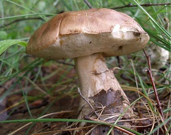 Как узнать: шляпка — от белой до почти черной, чаще — коричневая, ножка утолщается к основанию.