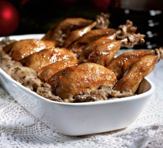 Ножом и вилкой срезайте мясо только с крылышек и грудки (ножки не едят). Не переворачивайте и не разрезайте тушку (то же самое относится к куропаткам).