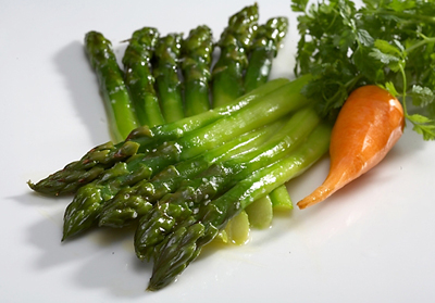 Побеги можно брать пальцами. Едят только мягкие верхушки, опуская их в соус (обычно голландский), а остальное откладывают. Если побеги тонкие и вялые, пользуйтесь ножом и вилкой.