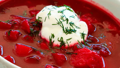 "Девичью" окраску борща советуют уравновесить "мужественным" приложением – пампушками с чесноком и зеленью.