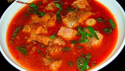 обе ата возбуждающим средством. Новичку же этот перечный суп может показаться "адом в ложке". Это вкусно, но впечатление такое, будто облизываешь вилы самого Сатаны, только что вынутые из печи. Кроме острого перца, сюда могут добавлять потроха, сушеную рыбу или же целую голову козы.