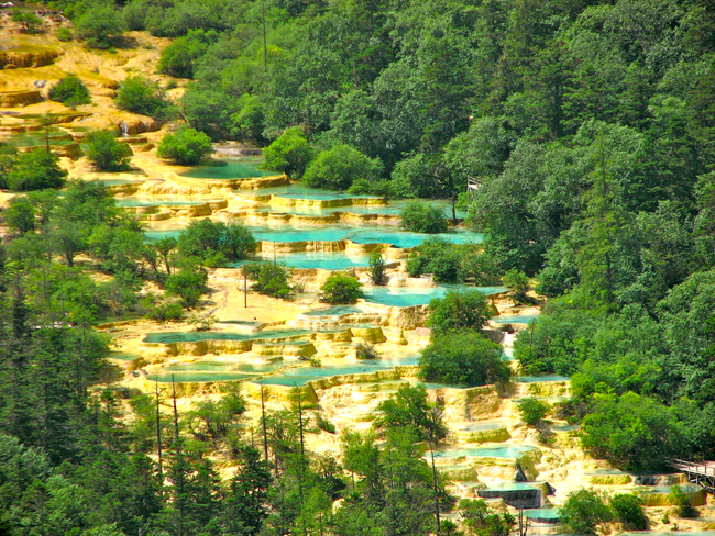 Более живописные виды, чем в заповеднике Хуанлун, еще надо поискать. Это место известно благодаря своим террасам из известкового туфа, а также огромному количеству озер разнообразнейших цветов и форм, дополненных пещерами, порогами, каскадами и водопадами.