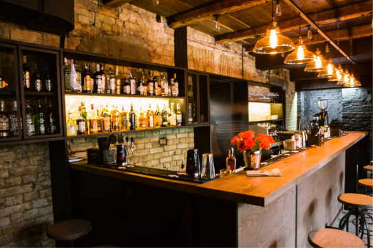 В первом зале расположен активный бар, за стойкой которого гости могут насладиться роскошной библиотекой алкогольных напитков в сопровождении удивительных барменских историй.