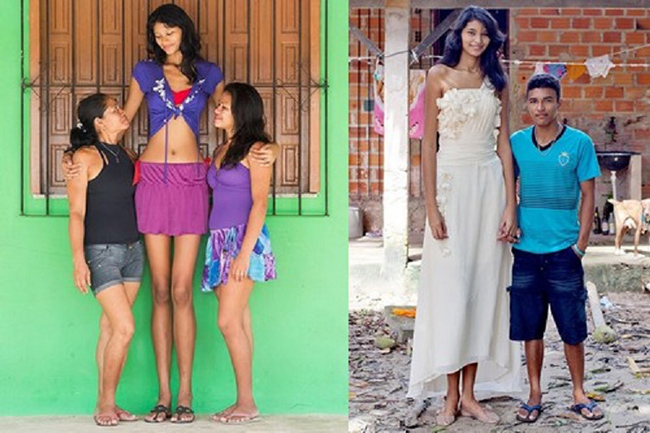 Молодая бразильянка имеет фантастический рост - 203 см. Виной тому - гигантизм: болезнь, которая развивается у детей с незавершенным процессом окостенения скелета. Но это не помешало Элизани найти свое счастье. Ее жених, Франсинальдо да Сильву Карвальо, гораздо ниже своей избранницы, но его скромный рост в 162 см не вызывает у 24-летнего мужчины совершенно никаких комплексов. Он восхищается красотой Элизани, пара уже мечтает о детях.