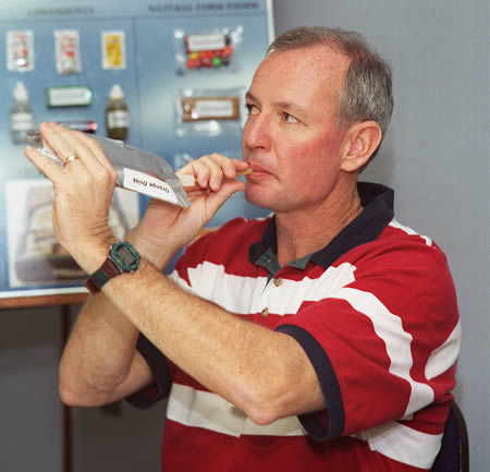 Конечно, приправы у космонавтов - в жидком виде. Как вы представляете себе соление или перчение пищи в условиях невесомости? Поэтому приходится создавать различные жидкие приправы, которые улучшают вкус продуктов из рациона космонавтов. В противном случае использование приправ было бы большой проблемой.