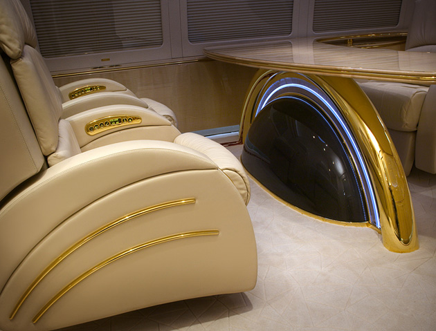 Хай-тек оборудование салона хорошо сочетается с общей теплотой интерьера и сиянием приборов командного центра», комментирует Ник Глейс. «Освещение привлекает взгляд зрителя к центру помещения, но в то же время заставляет невольно фокусироваться на приборной панели.