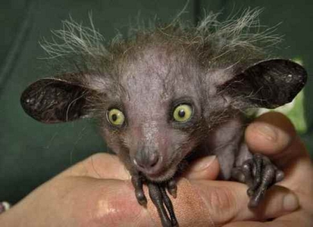 Это животное называется еще мадагаскарская руконожка, и представляет собой единственный вид в семействе руконожковых. Длина его достигает 1 метра, ведет ай-ай ночной образ жизни. Это, кстати говоря, самый крупный представитель ночных приматов. Открыто это животное в 1780 году, и выглядит страшновато. Животное это - насекомоядное, и вполне безобидно. Сейчас на Мадагаскаре основано несколько резерватов для спасения этого вида.