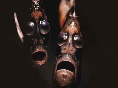 Это довольно маленькая рыба, размер самых крупных особей не превышает 12 сантиметров. Однако "лицо" у этой рыбы пугает так, словно это огромный монстр. Дело в том, что этим рыбам только в фильмах ужасов и сниматься - водянистые мутные глаза и общая схожесть с гипертрофированным лицом человека делают эту "рыбку" настоящим монстром. Стоит отметить, что рыба-топор вполне безобидна, а живет она в тропических и субтропических водоемах. Питается мелкими рачками, и ничего ужасного не делает.