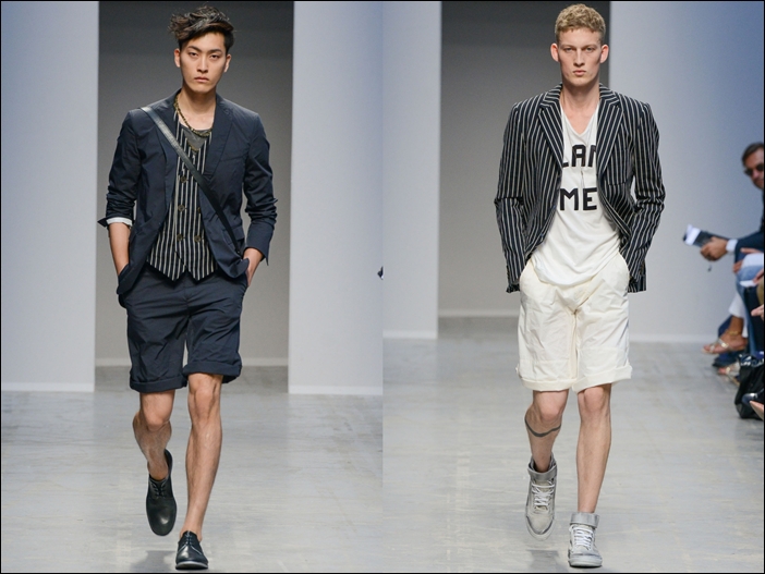 1. В этом сезоне лето 2013 мужские шорты могут быть как зауженными, так и свободного кроя. В этом случае определиться поможет только весь образ в целом, а также особенности фигуры. Мужчинам с полными или накаченными бедрами подойдут облегающие модели шорт. Это же касается и мужчин, у которых худые ноги.