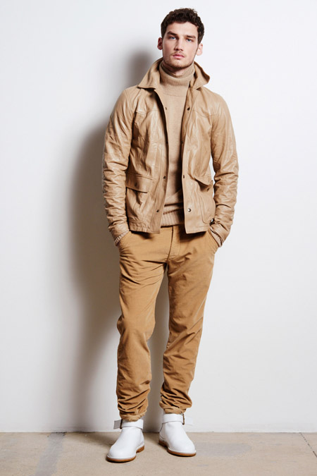 Брюки chinos уместны и с тонким свитером либо джемпером. Наиболее классическое сочетание – полосатый джемпер и светло-коричневые брюки чинос. В качестве верхней одежды можно использовать укороченное пальто, джинсовую или кожаную куртку без изобилия фурнитуры.