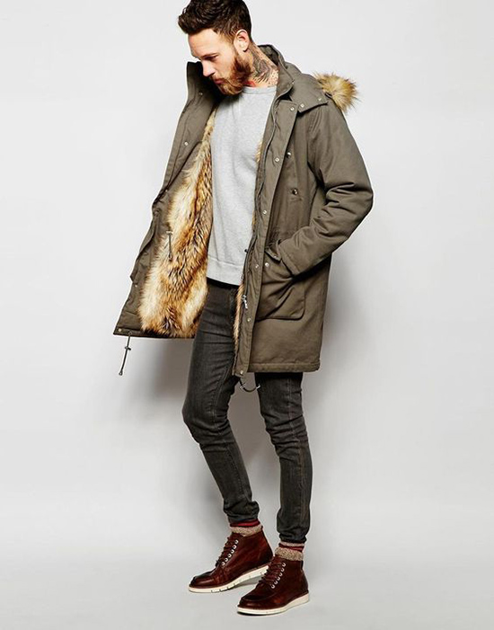 Варианты обуви тоже довольно разнообразные – челси, тимберленды, дезерты, ботинки от Dr Martens. С паркой хорошо будет смотреться и кожаная, и замшевая обувь.