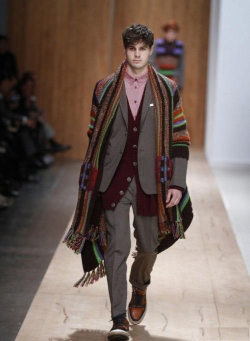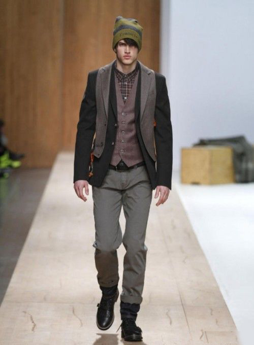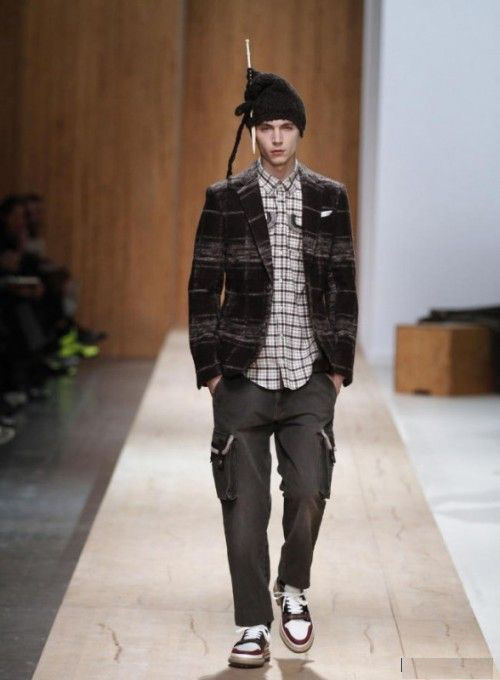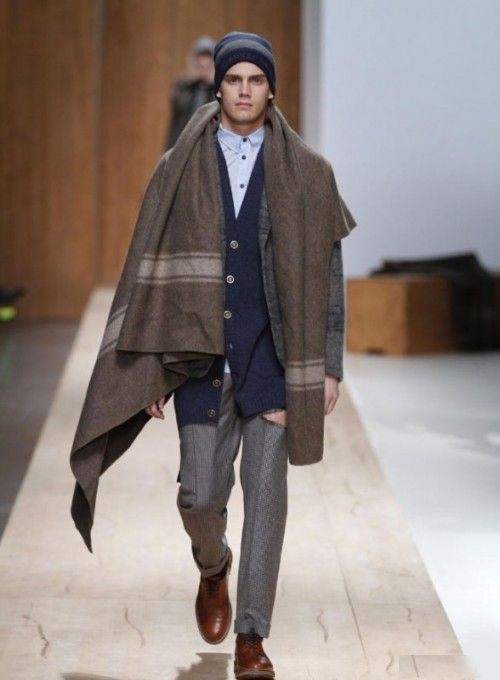 Мужская мода никак не отстает от женской, в ней также есть новые «старые» тренды, сочетание классики и брутальности, свежесть идеи и, конечно, оригинальность… Если говорить конкретно об этом бренде, то внимание привлекают задумки дизайнера. Почти в каждой модели можно увидеть что-то свое, домашнее: вязаные вещи, немного неуклюжие шапки и головные уборы, старые добрые шарфы, брюки и костюмы в клетку, бахрома…