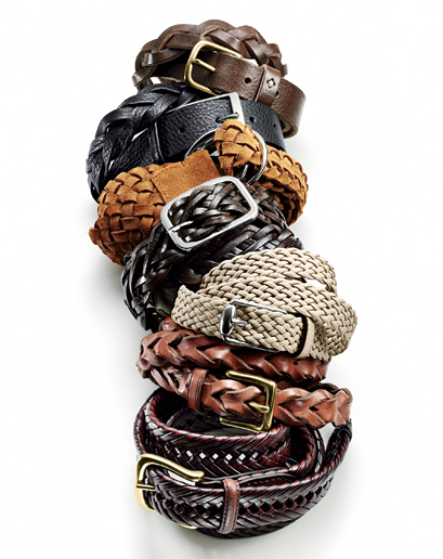 Ремни1. Плетеный ремень придает вид повседневности. Отлично подойдет для джинсов и чиносов. Однако не стоит надевать плетеный ремень с классическими брюками в офис.