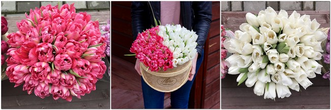 Тюльпаны по праву считаются весенними и как нельзя лучше подходят в качестве презента к женскому празднику. Они символизируют нежность, чистоту и искреннюю симпатию. Чаще всего тюльпаны собирают в монобукеты одного или нескольких оттенков. Подчеркнуть красоту бутонов можно при помощи дизайнерской бумаги. К 8 марта уместны композиции в коробках, подобранных в тон тюльпанов или в контрасте с ним.